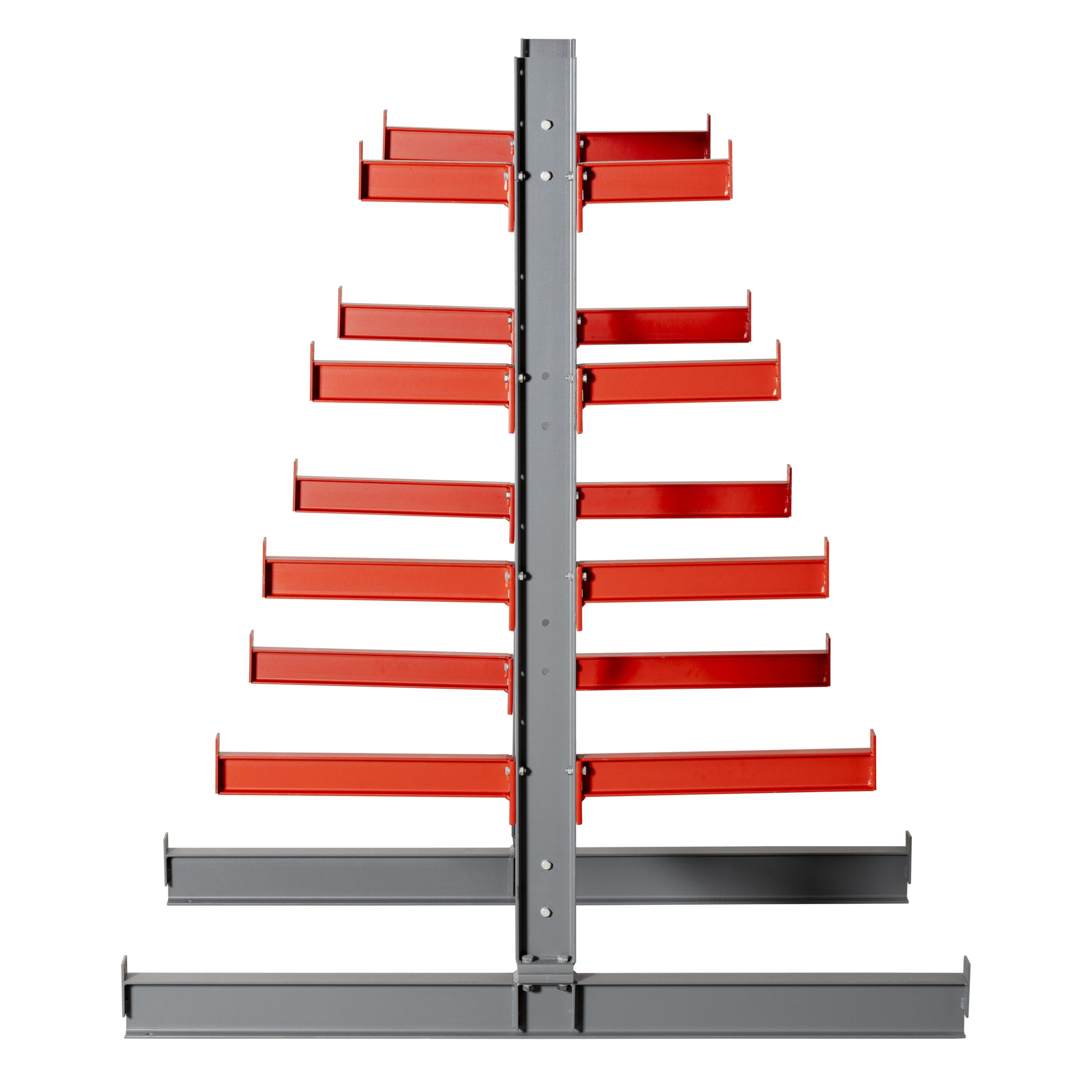 Verfügbar in einer Höhe von 2000 mm und 2500 mm und mit unterschiedlich langen Armen, bietet das Tannenbaumregal hohe Tragkraft und Stabilität. Es ist die ideale Lösung für Lager, in denen Waren wie lange Rohre, Balken oder Stahlprofile sicher und platzsparend aufbewahrt werden müssen.